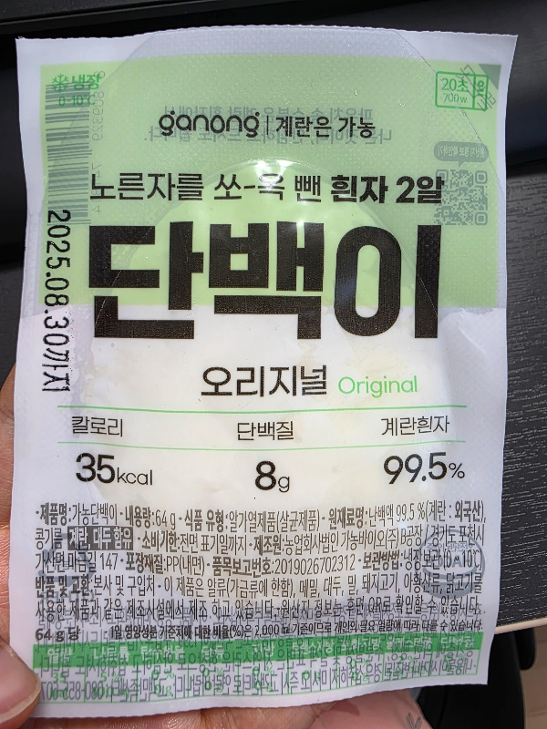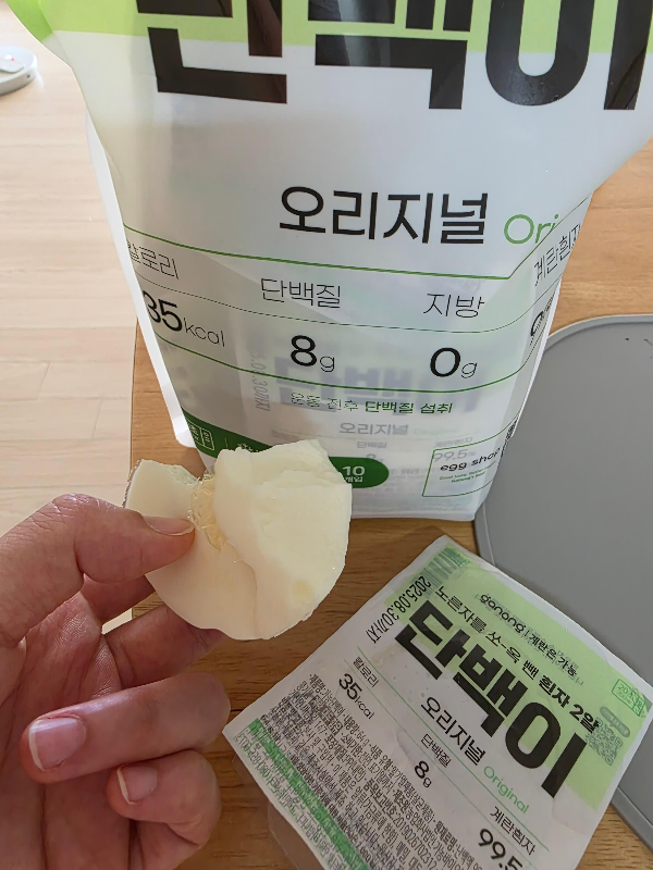 단백이는 낱개 포장되어 있어 냉장고에서 하나씩 꺼내먹기 너무 좋아요. 운동하랴 일하랴 정신 없는 현대인들에게 딱 입니다.